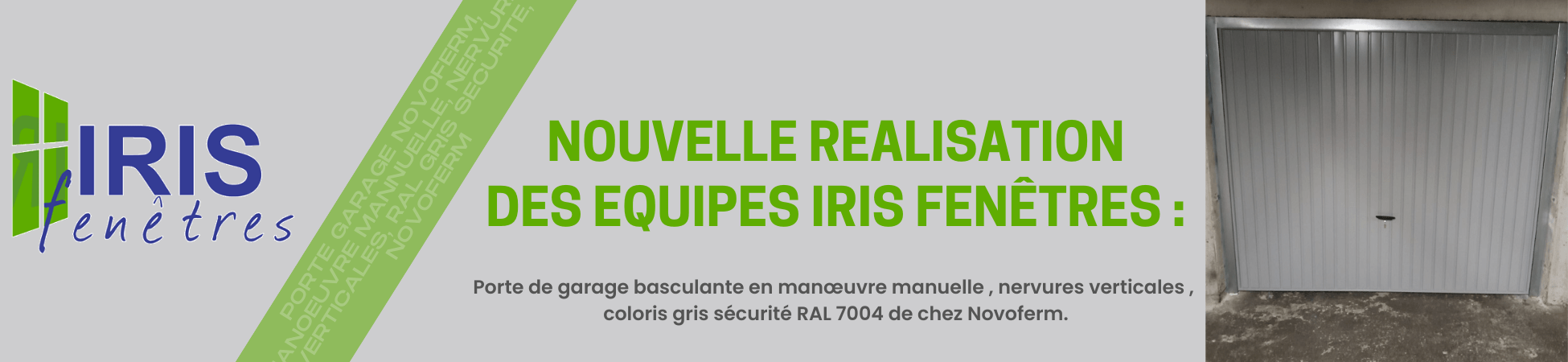 Porte de garage basculante en manœuvre manuelle , nervures verticales , coloris gris sécurité RAL 7004 de chez Novoferm.