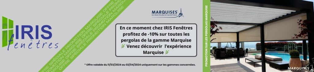 Ne laissez pas passer cette chance de transformer votre espace extérieur en un lieu de convivialité et de détente, tout en profitant de l’expertise et du savoir-faire français. Visitez IRIS Fenêtres entre le 11 mars et le 2 avril 2024 pour découvrir tout ce que la gamme Marquise a à vous offrir et pour bénéficier de conseils personnalisés qui feront de votre projet d’aménagement extérieur une réussite totale.